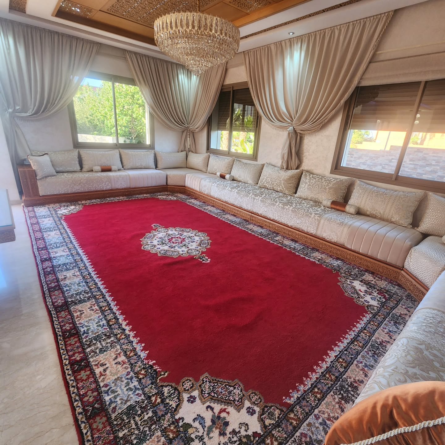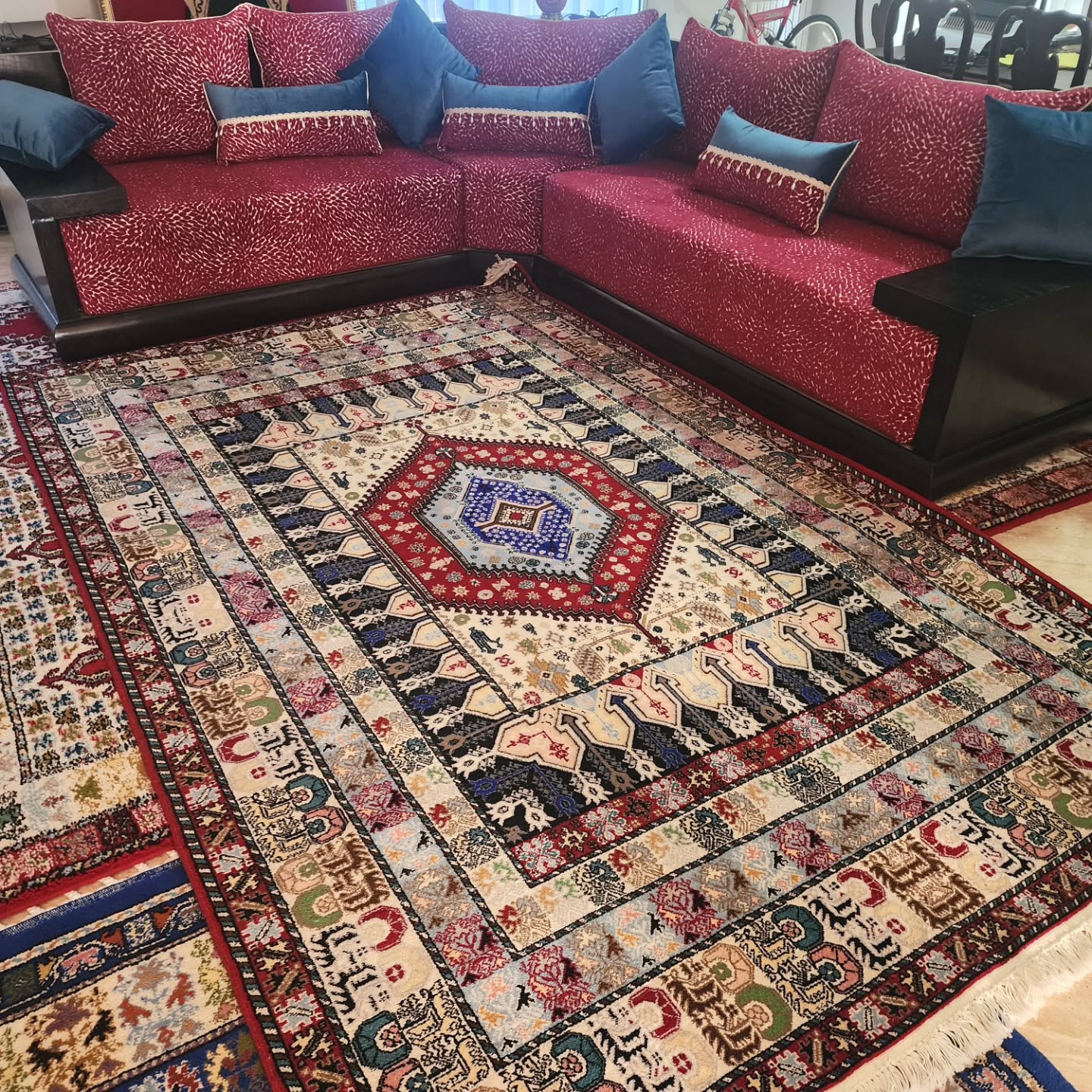 A masterpiece of heritage and artistry, Snidqat blends the richness of Moroccan tradition with the elegance of Persian canvases and patterns.